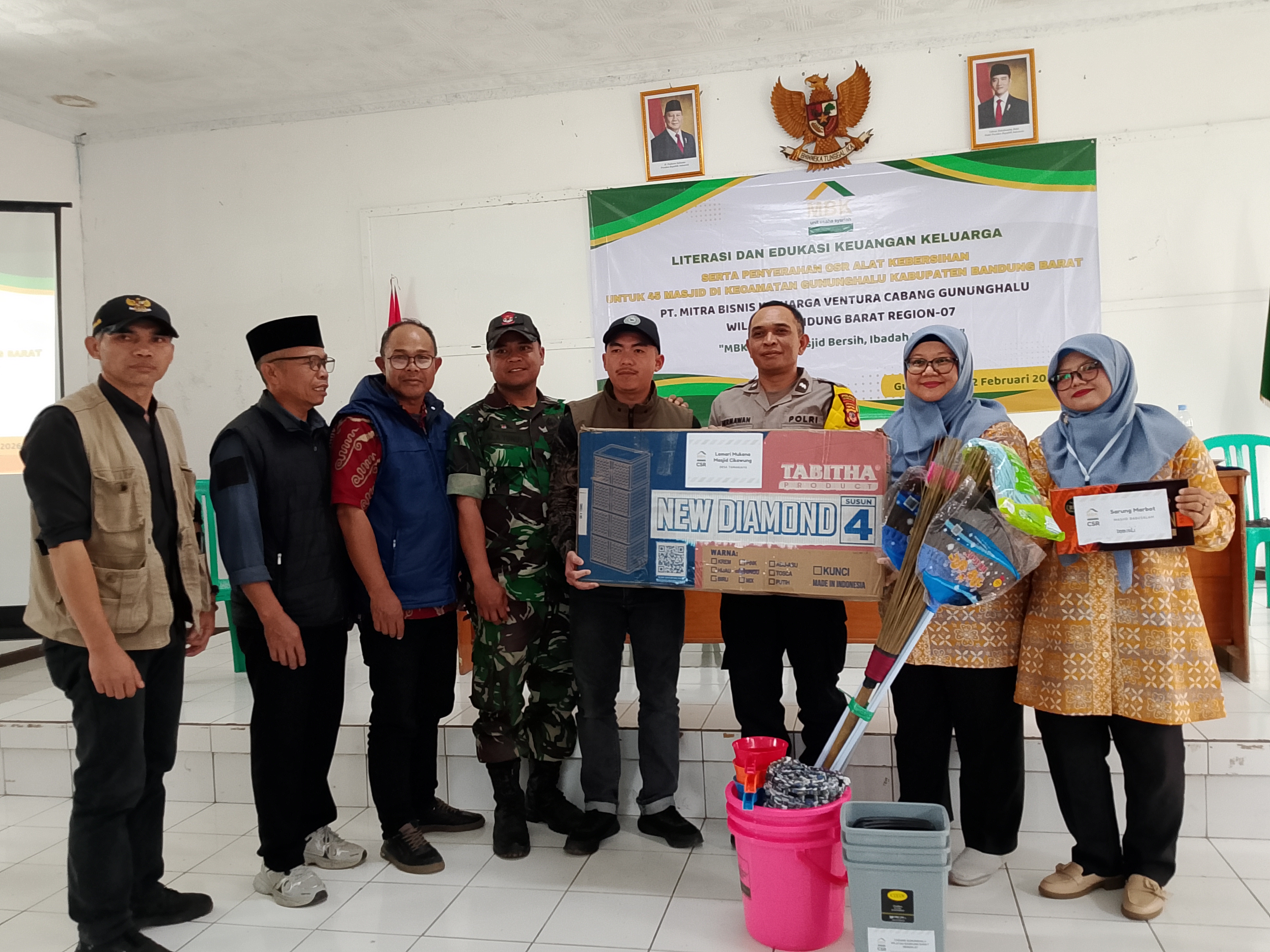 KILAS BERITA — PT Mitra Bisnis Keluarga (MBK) Ventura Cabang Gununghalu Region 07 menggelar kegiatan literasi dan edukasi keuangan keluarga sekaligus menyalurkan bantuan alat kebersihan bagi 45 masjid di Kecamatan Gununghalu, Kabupaten Bandung Barat, Kamis (12/2/2026).